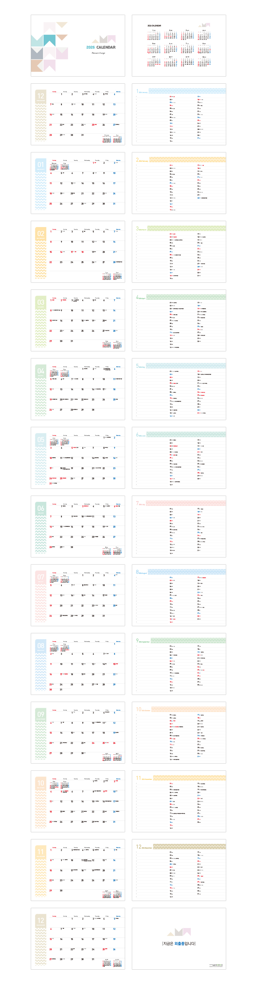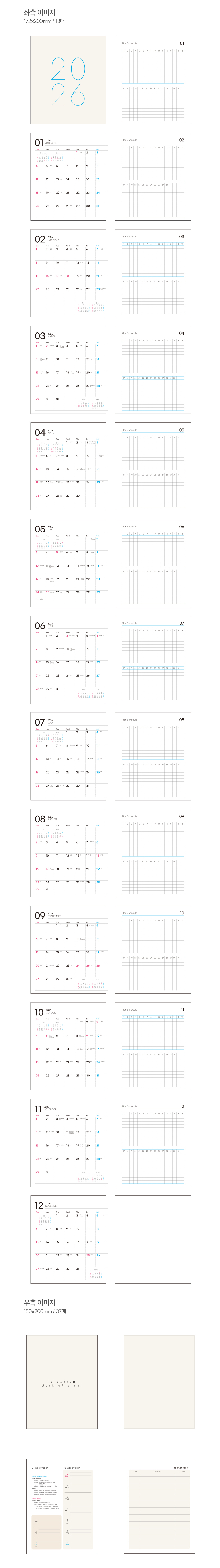| 제본 | 좌측 - 13매 / 우측 - 37매 / TW스프링 |